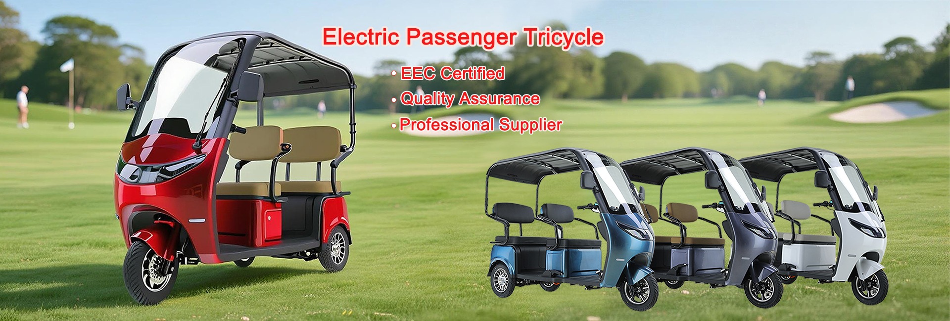 EEC 28mph 범위 62 마일 승객 전기 세발 자전거 3 륜 전기 툭툭 세발 자전거 바디 타입 판매 폐쇄